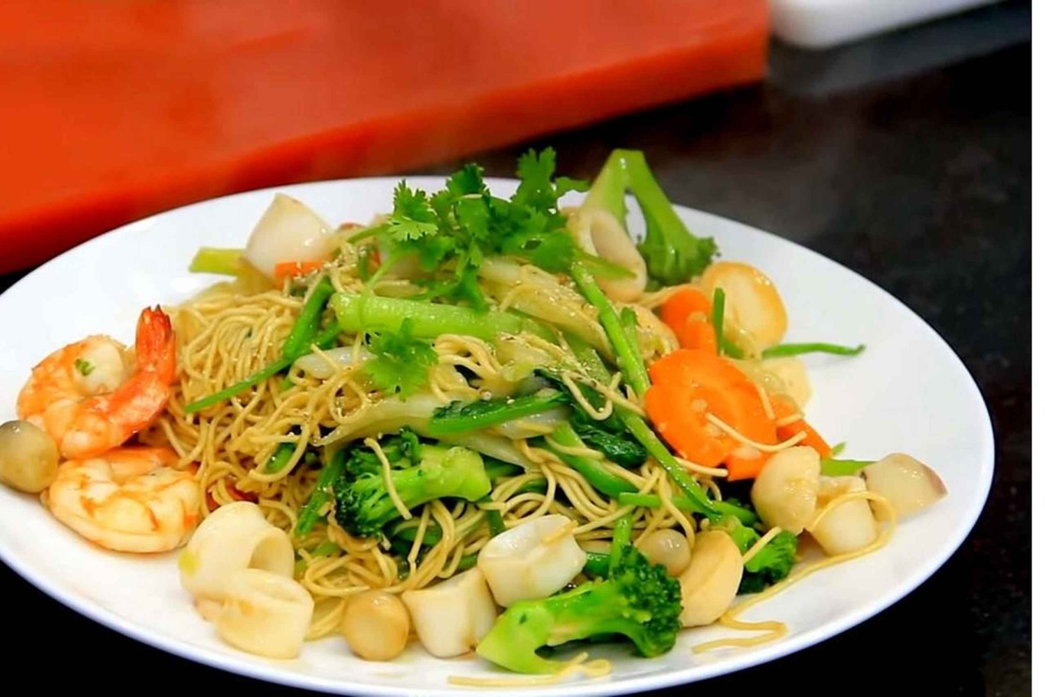 - Genieße ein Abendessen mit gedämpften Garnelen oder Tintenfisch, gebratenen Nudeln und vielem mehr