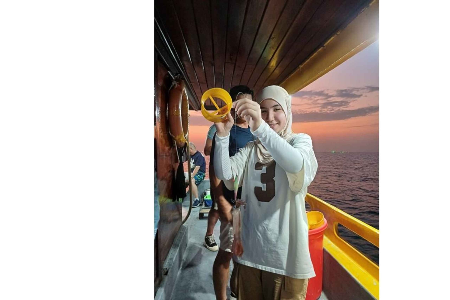 Beginne dein Abenteuer, indem du am Pier an Bord eines traditionellen Holzbootes gehst. Setze die Segel und genieße den Sonnenuntergang auf dem Meer. Versuch dich im Tintenfischangeln nach lokaler Art, die nötige Ausrüstung wird dir zur Verfügung gestellt.
