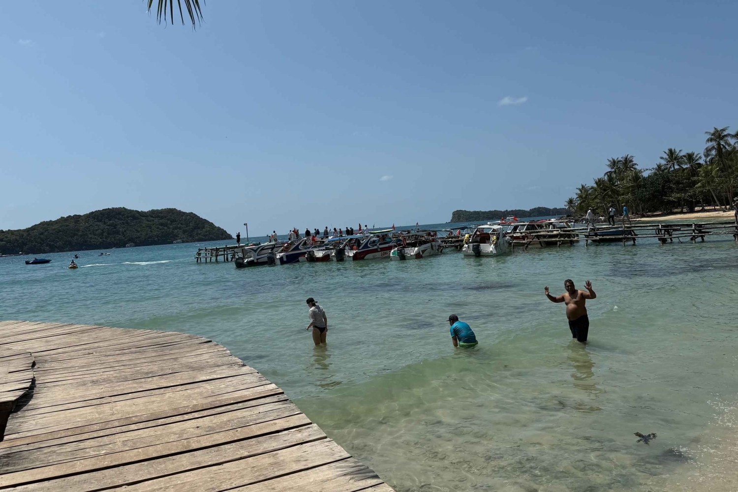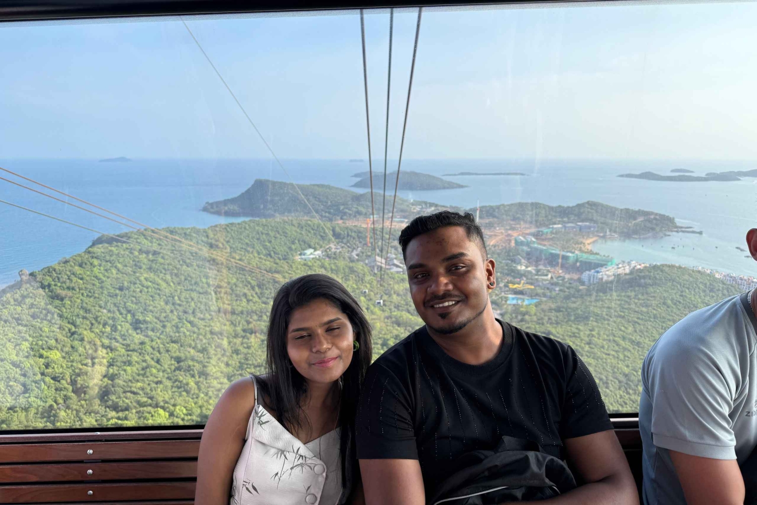 DESCUBRE 4 ISLAS EN CANOA: RECORRIDO POR EL PARAÍSO DE PHÚ QUỐC CON TELEFÉRICO A LA ISLA DE HÒN THƠM ¡Vive lo mejor de Phú Quốc en un día inolvidable! Únete a nuestro tour «Descubre 4 islas en canoa» para emprender un emocionante viaje por el impresionante archipiélago de An Thoi, donde explorarás Mây Rút, Gầm Ghì, Móng Tay, el teleférico a Hòn Thơm (isla de Thom) y disfrutarás de una fascinante visita a la granja de perlas local de Phú Quốc. Visita a un criadero de perlas: empieza tu aventura con la recogida del hotel y una breve visita al criadero de perlas de Phú Quốc. Aprende sobre el famoso proceso de cultivo de perlas de la isla y presencia cómo se recolectan las perlas naturales y se transforman en joyas exquisitas. Aventura de excursión por las islas: sal del puerto de An Thoi en una canoa de alta velocidad y explora la belleza prístina de las islas del sur. Snorkel en el islote de Gầm Ghì: sumérgete en los coloridos arrecifes de coral y admira la vibrante vida marina bajo las aguas turquesas. El paseo por el mar y los deportes acuáticos no están incluidos en este tour. Relájate en el islote de Mây Rút: nada, toma el sol o saca fotos aéreas impresionantes con el servicio gratuito de cámara aérea. Almuerzo en el islote de Móng Tay: disfruta de una deliciosa comida de marisco recién preparada mientras te rodeas de vistas paradisíacas. Teleférico a la isla de Hòn Thơm: vive la experiencia del teleférico marítimo más largo del mundo y disfruta de actividades llenas de diversión en el parque acuático, ¡perfecto tanto para familias como para amantes de las emociones fuertes! Opciones de excursión Tour privado: horario flexible. Disfruta de privacidad, comodidad y un itinerario personalizado a tu propio ritmo. Tour en grupo: sigue el itinerario compartido, ¡una forma estupenda de conocer a nuevos amigos y compartir la diversión! Notas importantes El itinerario puede variar según las condiciones meteorológicas, la hora de la reserva o los requisitos de seguridad. Infórmanos con antelación de cualquier restricción alimentaria o solicitud vegetariana. La recogida y el regreso solo están disponibles en las carreteras principales, ya que los vehículos no pueden acceder a callejones estrechos.Includes