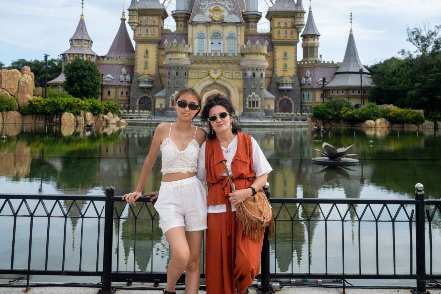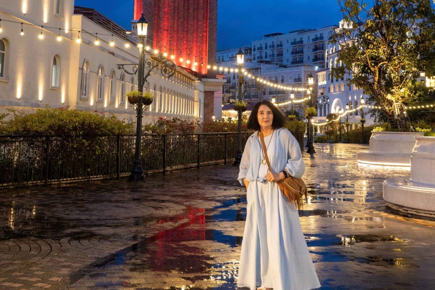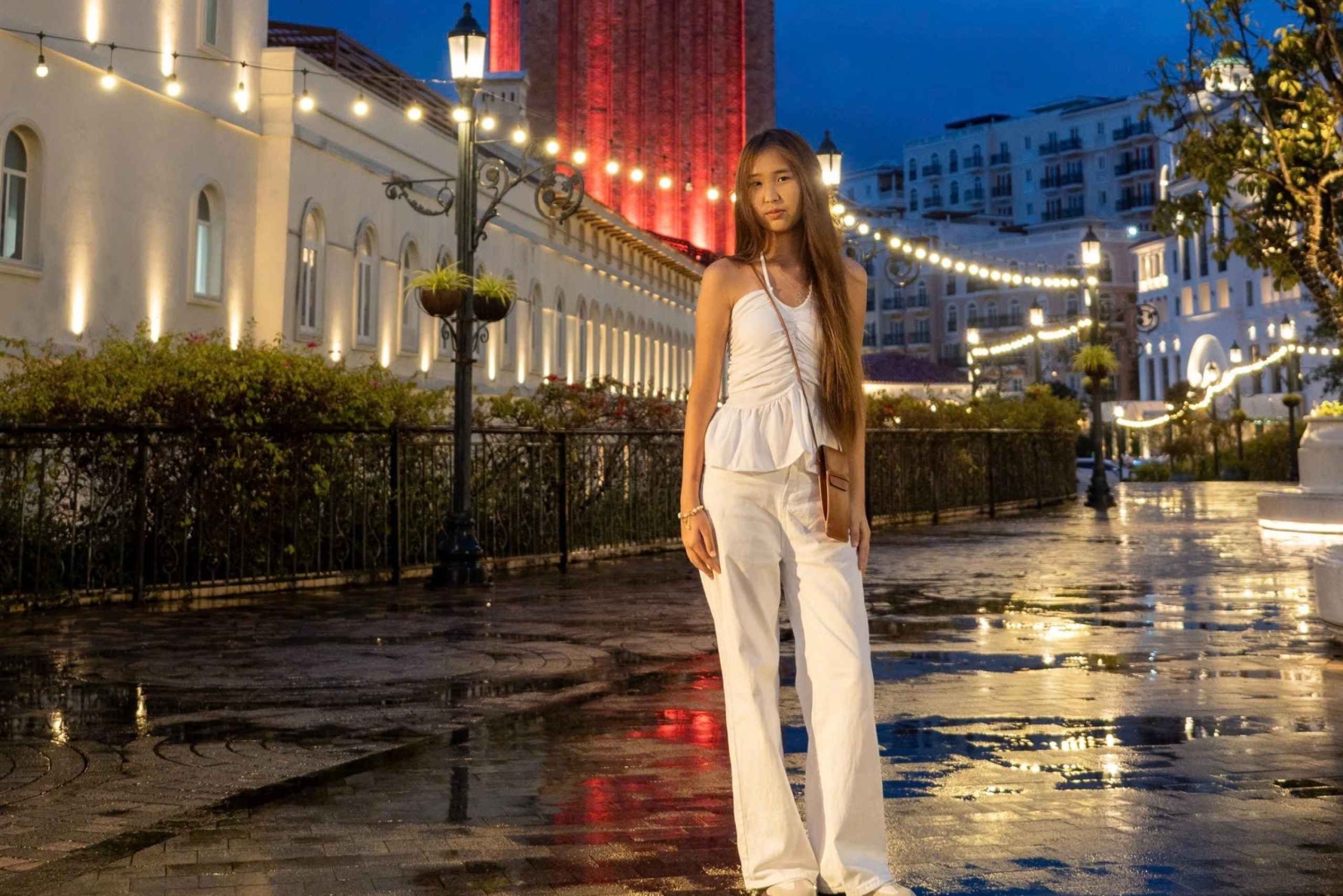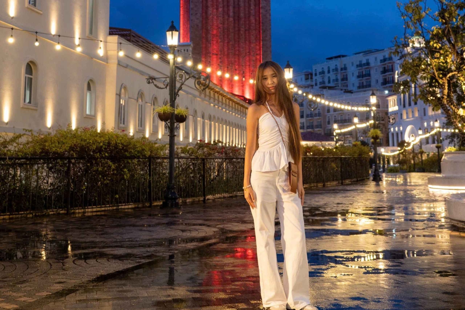 Grand World, one of Phu Quoc’s most iconic and colorful destinations. Capture the charm of European-style architecture, Venetian-inspired canals and bridges, elegant streets, cafés, and artistic corners. Your professional photographer will gently guide you with natural poses, candid moments, and couple interactions to create relaxed and authentic images. Vinh Dam Beach, a peaceful and less-crowded shoreline known for its clear water and tranquil atmosphere. Enjoy barefoot walks along the sand, flowing dresses in the sea breeze, and soft, romantic compositions. This location is especially popular with ladies and couples seeking elegant, natural-looking photos. The highlight of the experience is the sunset photography session. As the sun slowly sinks into the sea, your photographer will capture magical golden light, romantic embraces, hand-holding moments, and dreamy silhouettes against the glowing horizon. This is the most emotional and cinematic moment of the day, creating truly unforgettable images. Sunset Town, one of Phu Quoc’s most romantic and visually striking destinations. Famous for its Mediterranean-inspired architecture, colorful hillside buildings, and sweeping sea views, Sunset Town offers a cinematic backdrop unlike anywhere else on the island. Stroll through charming streets, stone stairways, and scenic viewpoints overlooking the ocean. Capture natural moments among pastel buildings, archways, balconies, and hidden corners glowing beautifully in the late-afternoon light. This area is especially loved by couples, solo travelers, and content creators seeking stylish, cinematic, and timeless photos. If photo sessions take place at destinations that require entrance tickets, an additional ticket fee will apply for the photographer team. Guests are responsible for covering the photographer’s entrance tickets at each location. This is a 5-hour tour. Due to time limitations, it is not possible to complete photo sessions at all locations mentioned. Guests may choose one or two nearby locations, and the itinerary will be adjusted to focus on the best and most suitable spots based on timing and preferences.Includes