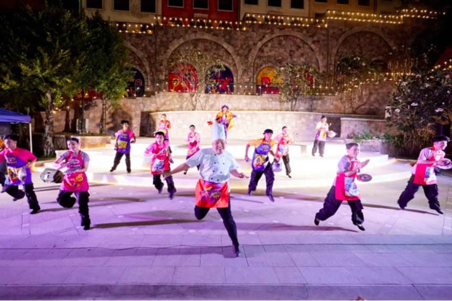 Experience the vibrant atmosphere of Sunset Town in Phu Quoc on a guided tour. Explore VuiFest Night Market, enjoy the Symphony of the Sea show, and take photos at Kiss Bridge.