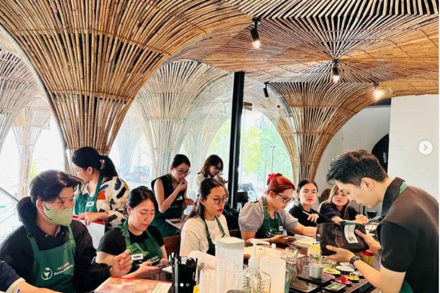 9h.am to 9h45.am Join us at Coffee Tree Roaster for a unique hands-on coffee roasting experience. You’ll explore the world’s most popular coffee varieties, learn about their origins, and discover how flavor develops during roasting. Step inside our Roasting Room to observe an Arabica roast in action, guided by a professional. You'll get to see, hear, and smell the transformation process, learn how to evaluate roasted beans, and compare Arabica and Robusta. Finally, gain useful tips on packaging and preserving your coffee to keep it fresh and aromatic. 9h45.am to 11h.am After a short break in the Brewing Room, guests will be introduced to the traditional Vietnamese Phin brewing method, including how to select the right beans for this iconic style. Everyone will follow along to brew their own phin coffee alongside the guide. Next, participants split into teams to craft two classic drinks—iced black coffee and iced milk coffee—then taste and enjoy their creations. The session continues with an introduction to the Espresso machine, where guests will learn to grind, tamp, and extract espresso shots. Finally, get hands-on experience making Italian favorites like Americano, Latte, and Mocha, followed by a showcase of the products used throughout the workshop.Includes