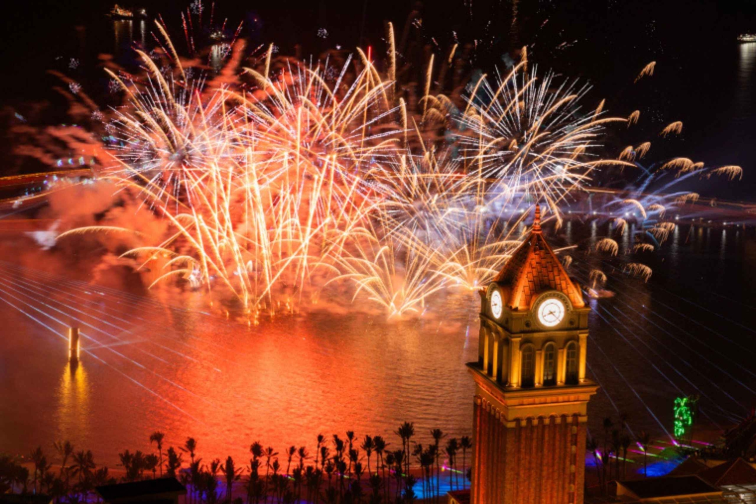 ✨ Scegli la tua esperienza Opzione 1 – Spettacolo Symphony of the Sea (da novembre ad aprile) Immergiti in uno spettacolo oceanico di livello mondiale che combina musica, acqua, fuoco e luce in una sinfonia mozzafiato. Ammira i meravigliosi fuochi d'artificio e gli effetti 3D che illuminano il cielo notturno di Phú Quốc. Opzione 2 – Spettacolo Kiss of the Sea (chiuso ogni martedì) Goditi il romantico spettacolo Kiss of the Sea al Kiss of the Sea Stage, dove una spettacolare fusione di laser, fontane e fiamme racconta una storia d'amore e di connessione in riva al mare. Si conclude con uno spettacolo pirotecnico ad alta quota Opzione 3 – Notte speciale romantica (con guida, cena leggera e trasferimento in hotel) Rendi la tua serata indimenticabile con un'esperienza guidata che include sia lo spettacolo Symphony of the Sea che Kiss of the Sea. Goditi una cena leggera in un ristorante sul mare prima degli spettacoli e viaggia comodamente con i trasferimenti di andata e ritorno dall'hotel: una serata romantica perfetta sotto le stelle.Includes