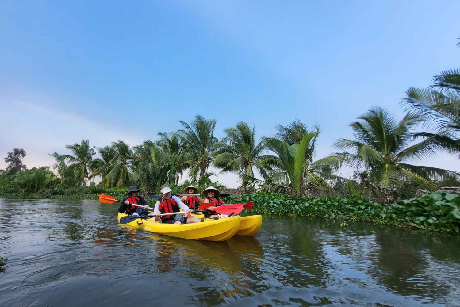 CENA WYCIECZKI/Obejmuje Prywatny transport, butelka wody mineralnej Rejs wycieczkowy po delcie Mekongu Zakwaterowanie u rodziny w małym ogrodzie Pokój z klimatyzacją Przewodnik mówiący po angielsku Łódź wiosłowa, rower Kajak i rower Wszystkie posiłki (B = śniadanie, L = lunch, D = kolacja) Wszystkie opłaty za wstęp, podatek Ubezpieczenie podróżneEasy cancellation
