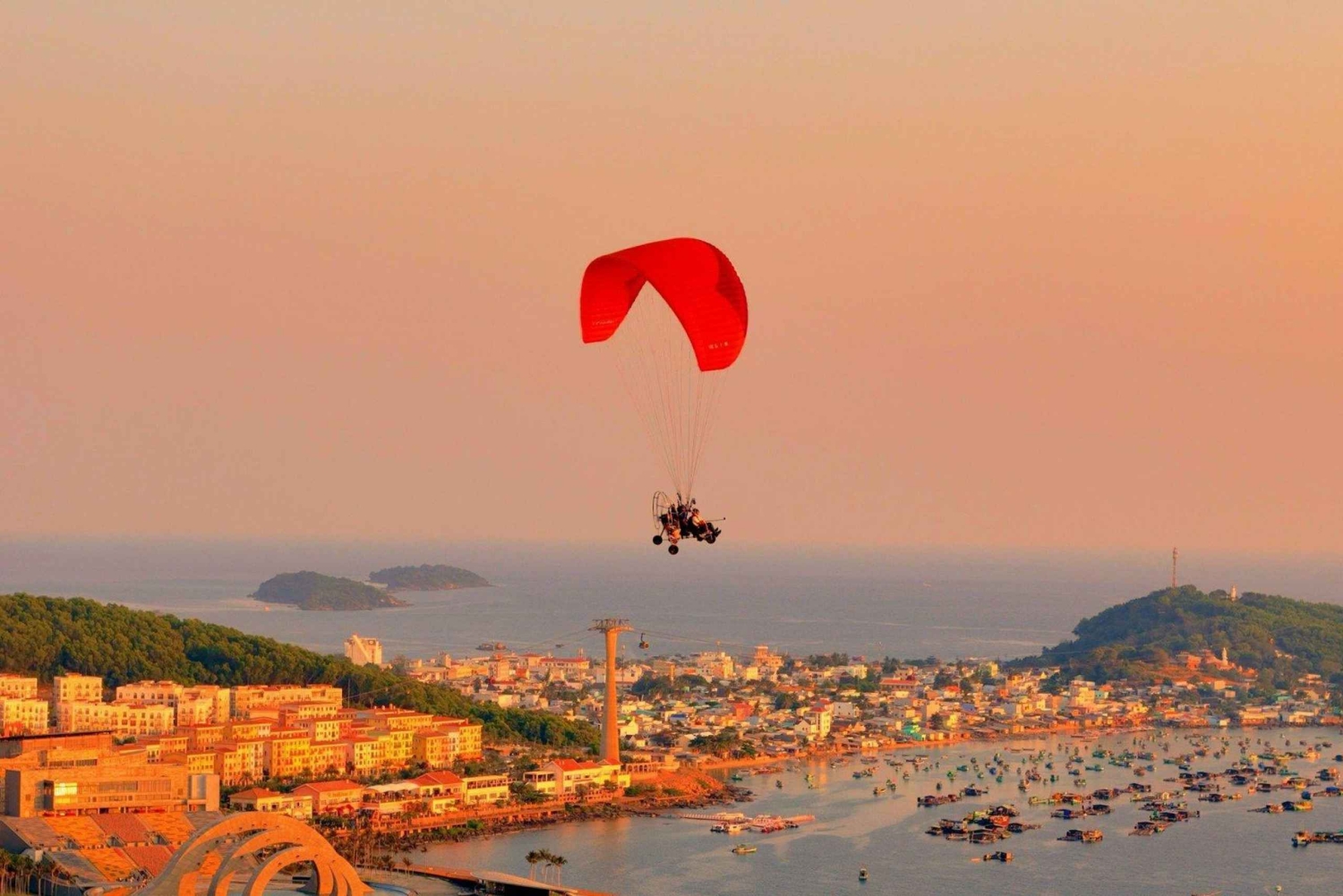 O parapente é uma atividade de aventura emocionante e estimulante que os visitantes podem desfrutar em Phu Quoc. Você tem a oportunidade de planar no ar e admirar o majestoso panorama da ilha.