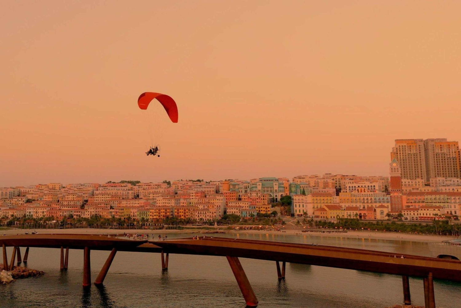 Itinerário Phu Quoc Adventure Ilha do Sul O parapente é uma atividade de aventura emocionante e estimulante que os visitantes podem desfrutar em Phu Quoc. Aqui, você tem a oportunidade de planar no ar e admirar o majestoso panorama da ilha do alto. Praia Star (Praia Sao): Relaxe e desfrute da beleza serena da Praia de Sao, famosa por suas areias brancas e águas cristalinas. Você poderá nadar com segurança, passear tranquilamente e tirar fotos pitorescas. Prisão de Phu Quoc (Prisão de Coconut Tree): Conheça a história do Vietnã na maior prisão para prisioneiros de guerra comunistas do sul. Explore exposições e réplicas de cenas de tortura usadas durante a guerra. Pagode Ho Quoc: Maravilhe-se com o majestoso Ho Quoc Pagoda, aninhado na encosta da montanha com vistas panorâmicas do vasto mar. Admire a arquitetura grandiosa, as estátuas complexas e a imponente estátua Guanyin de 30 metros. Fazenda de pérolas: Mergulhe nos meandros do cultivo e processamento de pérolas em uma das maiores e mais renomadas fazendas de pérolas de Phu Quoc. Descubra joias de pérolas requintadas, perfeitas para presentes valiosos.Includes