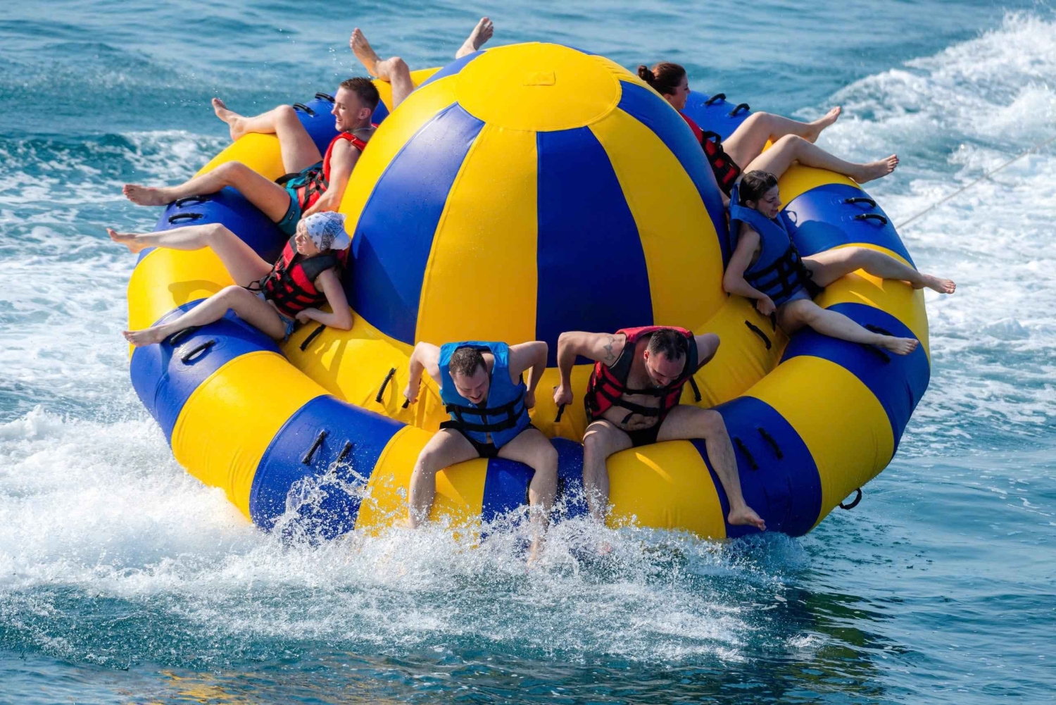 2-vägs skyttel. Tur och retur med snabbgående båt. Flytvästar. Välkomstdrink. Jeski 10 minuter. 5-minuters solo fallskärm. roterande boj. 1 portion pommes frites. 1 burk tigeröl. Reseförsäkring. Lokal guide.Important Information