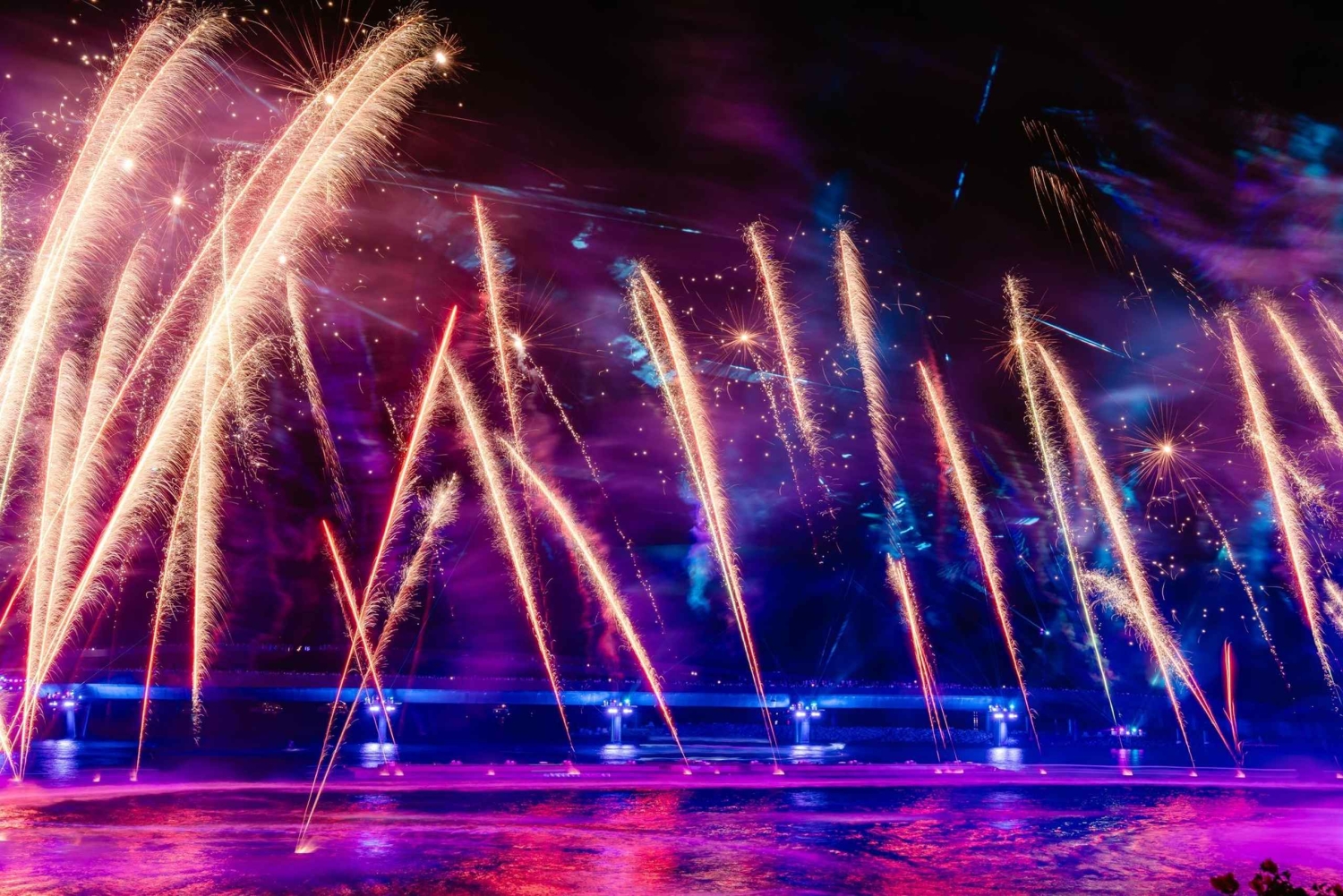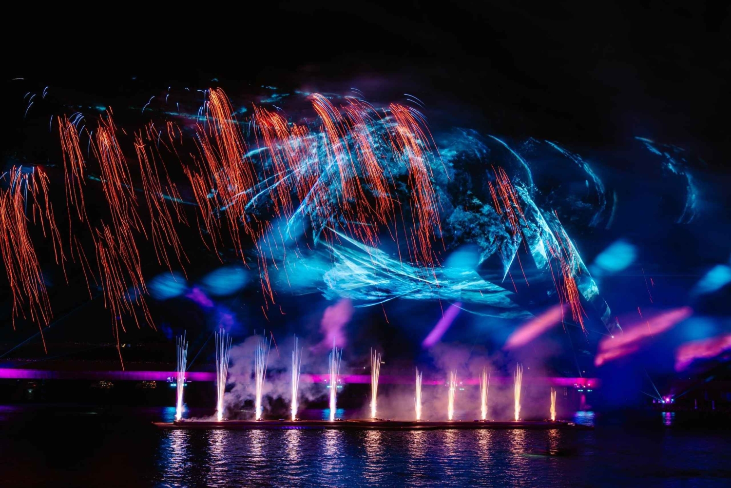 - Njut av Kiss of the Sea-showen från läktaren med vatten, ljus och fyrverkerier