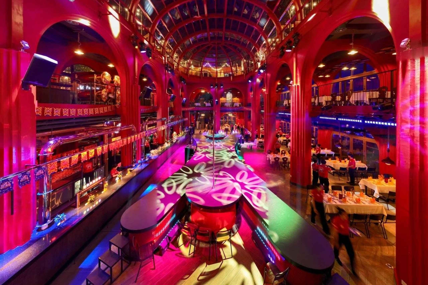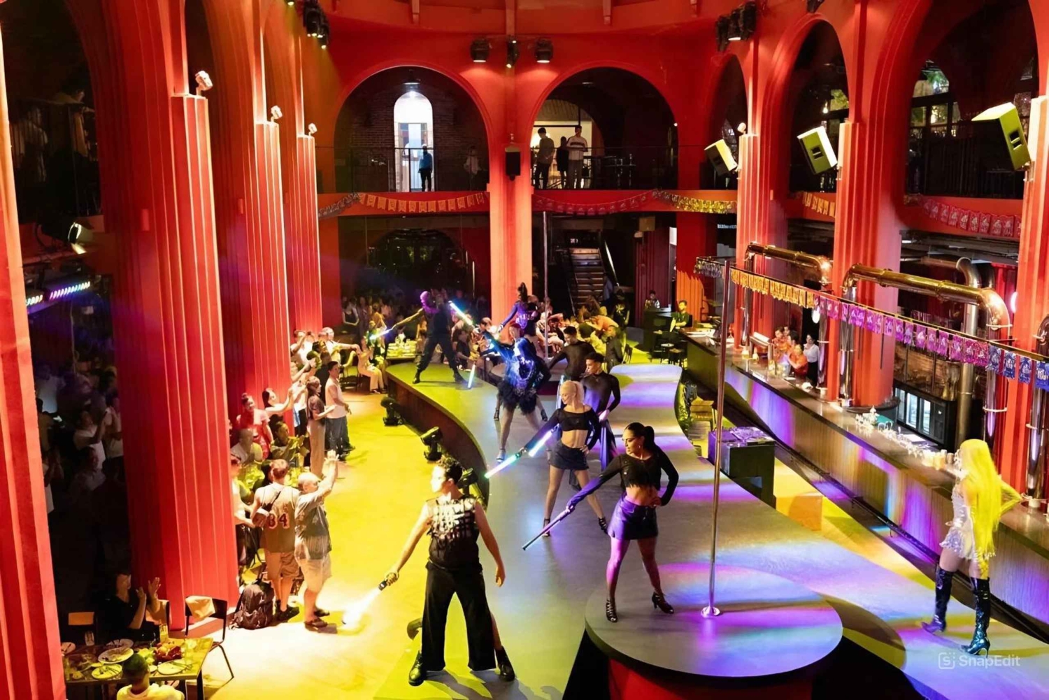 Sångare framför populära låtar medan dansare ger energi och färg till kvällen.