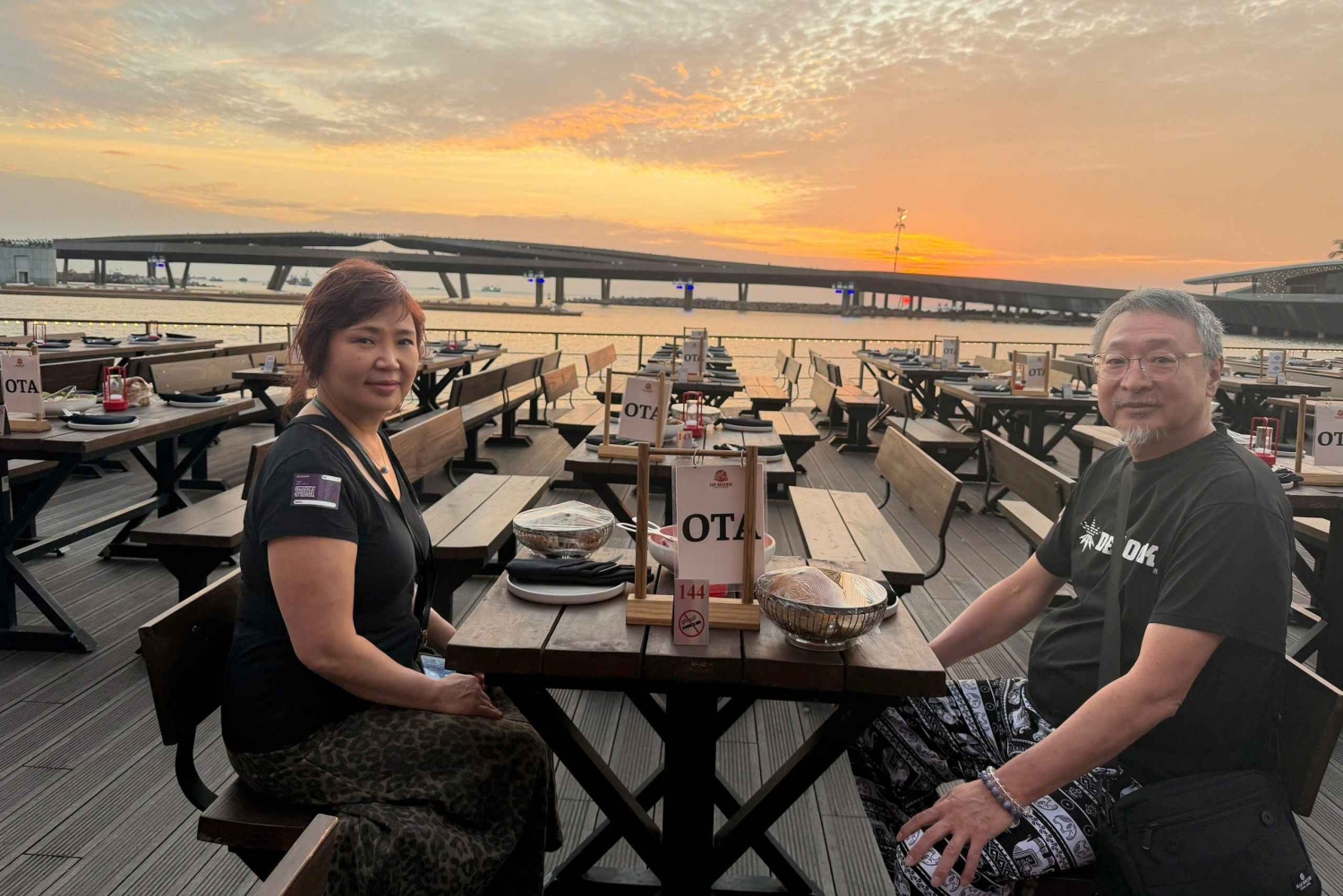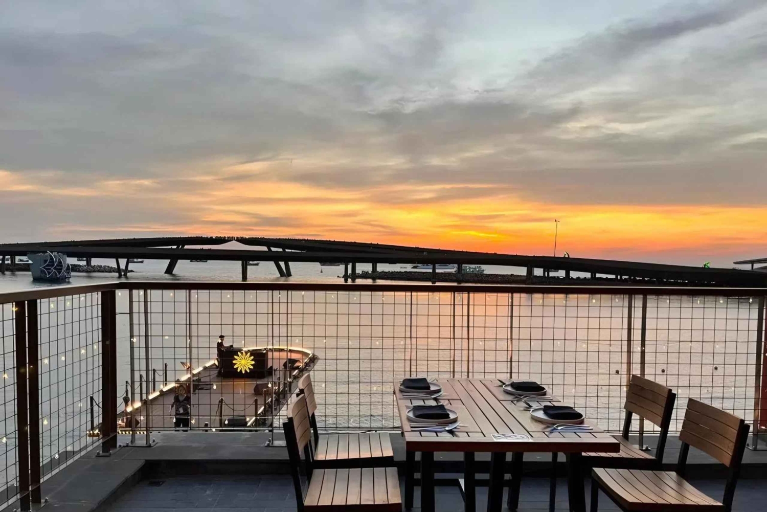 När du anländer kommer vår vänliga personal att välkomna dig och guida dig till ditt bord. Du får en uppfriskande välkomstdrink medan du tittar på solnedgången över havet. Träinredningen, den milda havsbrisen och den avslappnade atmosfären skapar en mysig och romantisk miljö.