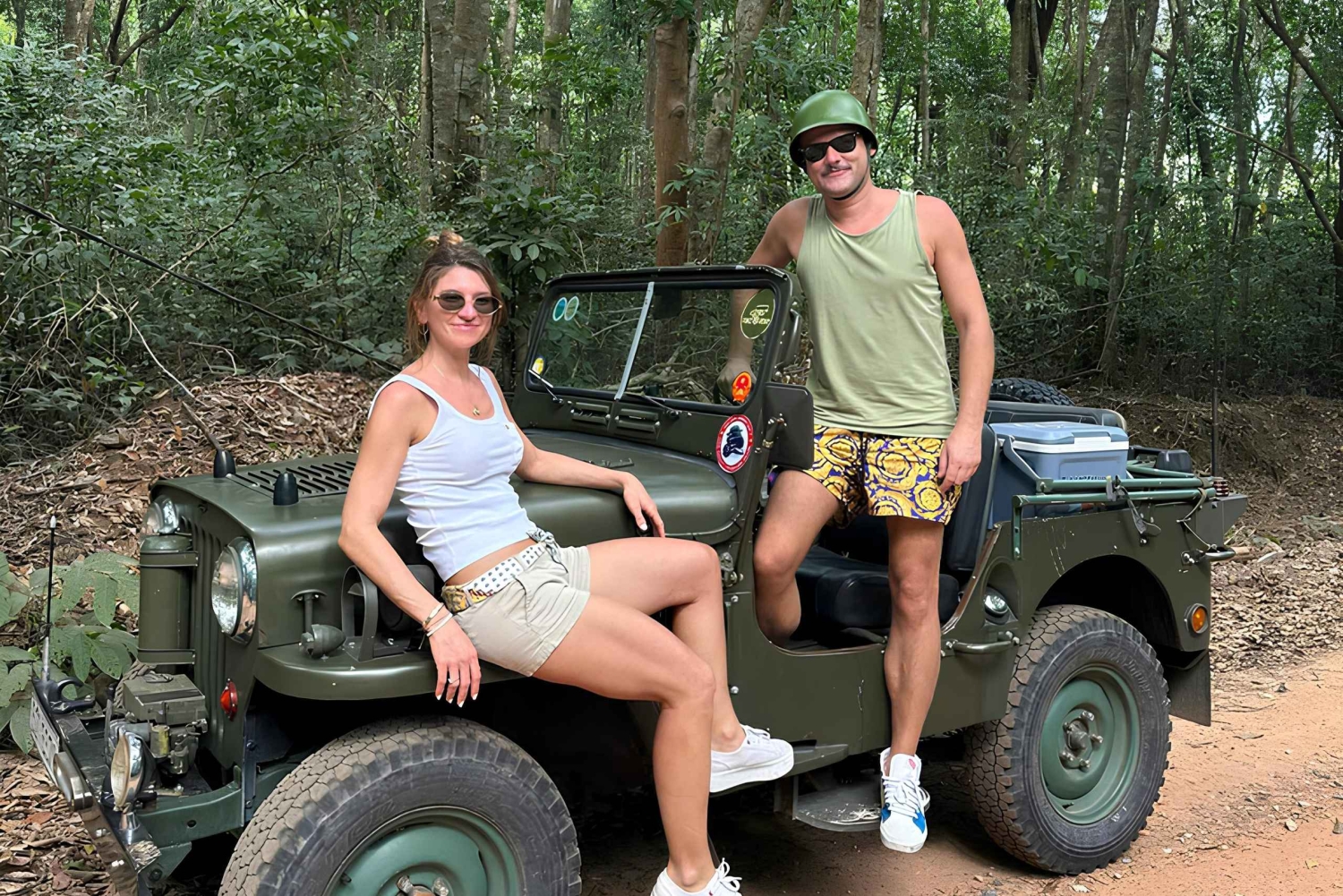 Börja din Phu Quoc-resa med stil med en vintage Army Jeep som hämtar dig på flygplatsen, en naturskön tur längs kusten och ett snabbt fotostopp på en vacker strand.