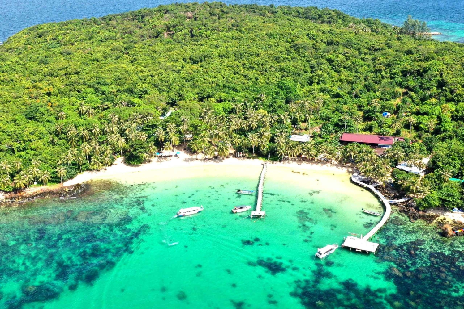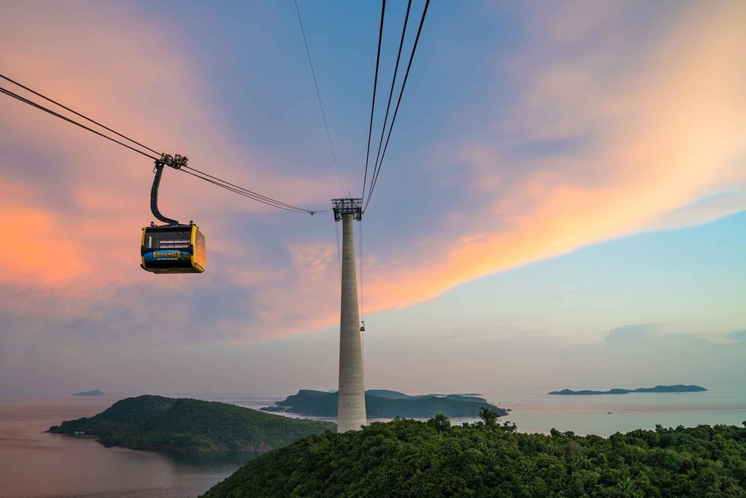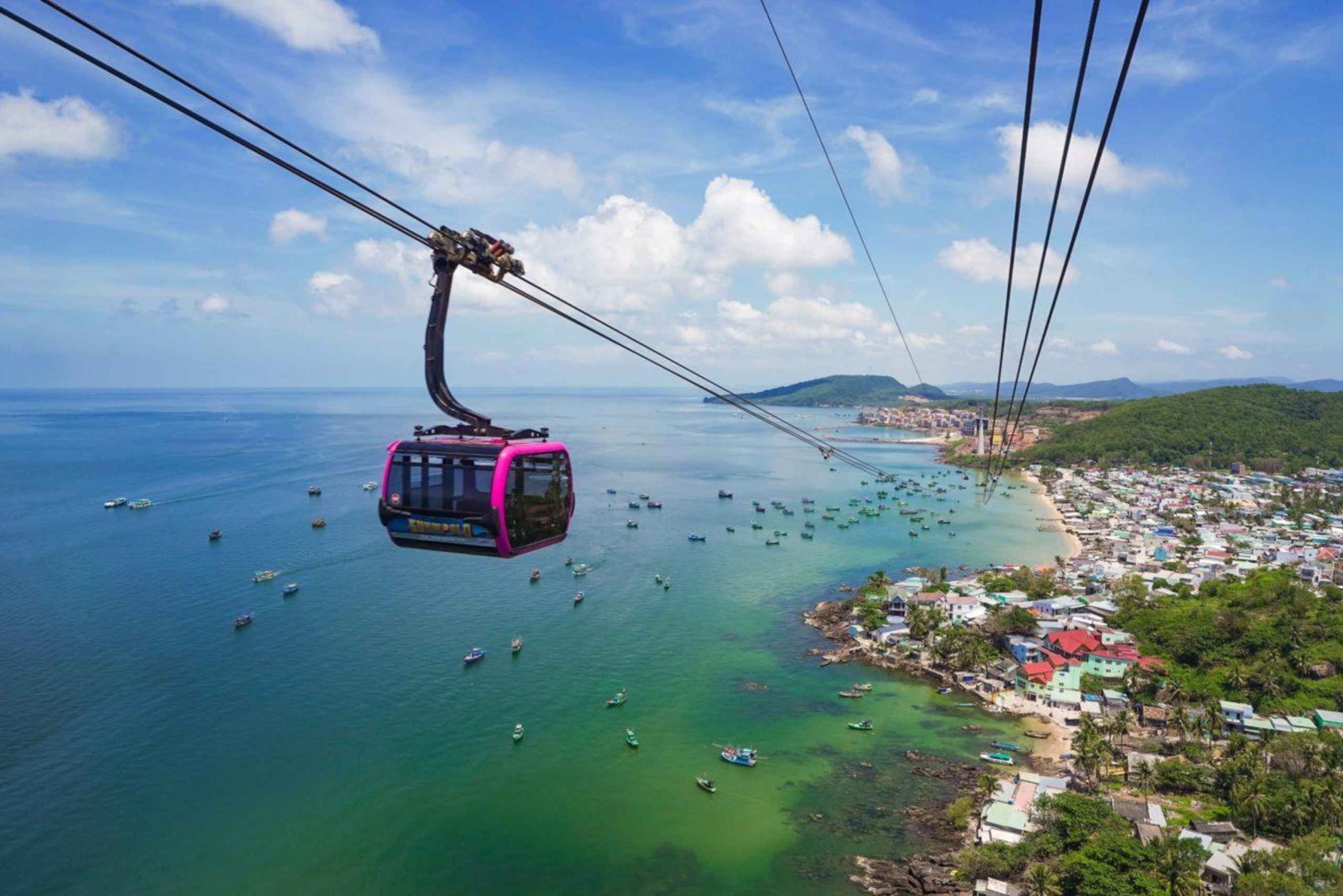 Upptäck Phu Quoc, ett vietnamesiskt paradis, känt för sina tropiska underverk och vackra vita sandstränder. Åk på öluff, se härliga solnedgångar och beundra fantastiska utsikter ombord på en båt. Njut av den exotiska atmosfären på Phu Quocs finaste platser, som Gam Ghi, May Rut Ngoai och May Rut Trong. Ha vattenupplevelser som snorkling och fiske i båten. Sightseeing med världens längsta linbana och Sun World Nature Theme Park. Resplan: 08:00: Du hämtas upp på hotellet och resan börjar. När du väl har gått ombord: ●Havsfiske på 30 minuter. ● Kokosholme – Besök 'Ocean World' Sea sports underhållningscenter. Det finns fler vattensporter på Ocean World för dig att uppleva: Flyboard, jetski och parasailing (självfinansierat). ●Coral Park: Upplev havsvandring (egen finansiering). Stanna vid tre öar i An Thoi-skärgården: ●Sightseeing Gam Ghi islet: Njut av snorkling. ●Ät lunch ombord. ●Sightseeing May Rut Trong islet: chilla och bada i havet. ●Sightseeing med världens längsta linbana och Sun World Nature Theme Park. 17:00: Återvänd till An Thoi-hamnen och ta dig tillbaka till ditt hotell. Lunchmeny: 1. Ångkokta räkor. 2. Sötsur stekt bläckfisk. 3. Stekt eller bräserad fisk. 4. Wokad kyckling med citrongräs och chili. 5. Wokade nudlar med grönsaker. 6. Wokad morning glory med vitlök. 7. Stekta ägg. 8. Ångkokt ris. 9. Färsk frukt. Förbud och begränsningar ●Denna aktivitet rekommenderas inte för personer med vissa medicinska tillstånd som högt blodtryck, epilepsi, etc. ●En tilläggsavgift på 20 % tillkommer om ditt deltagandedatum är på offentliga Tet-helgdagar (01/01, 16/02 -21/02, 30/04, 01/05, 02/09), som betalas på plats.Includes